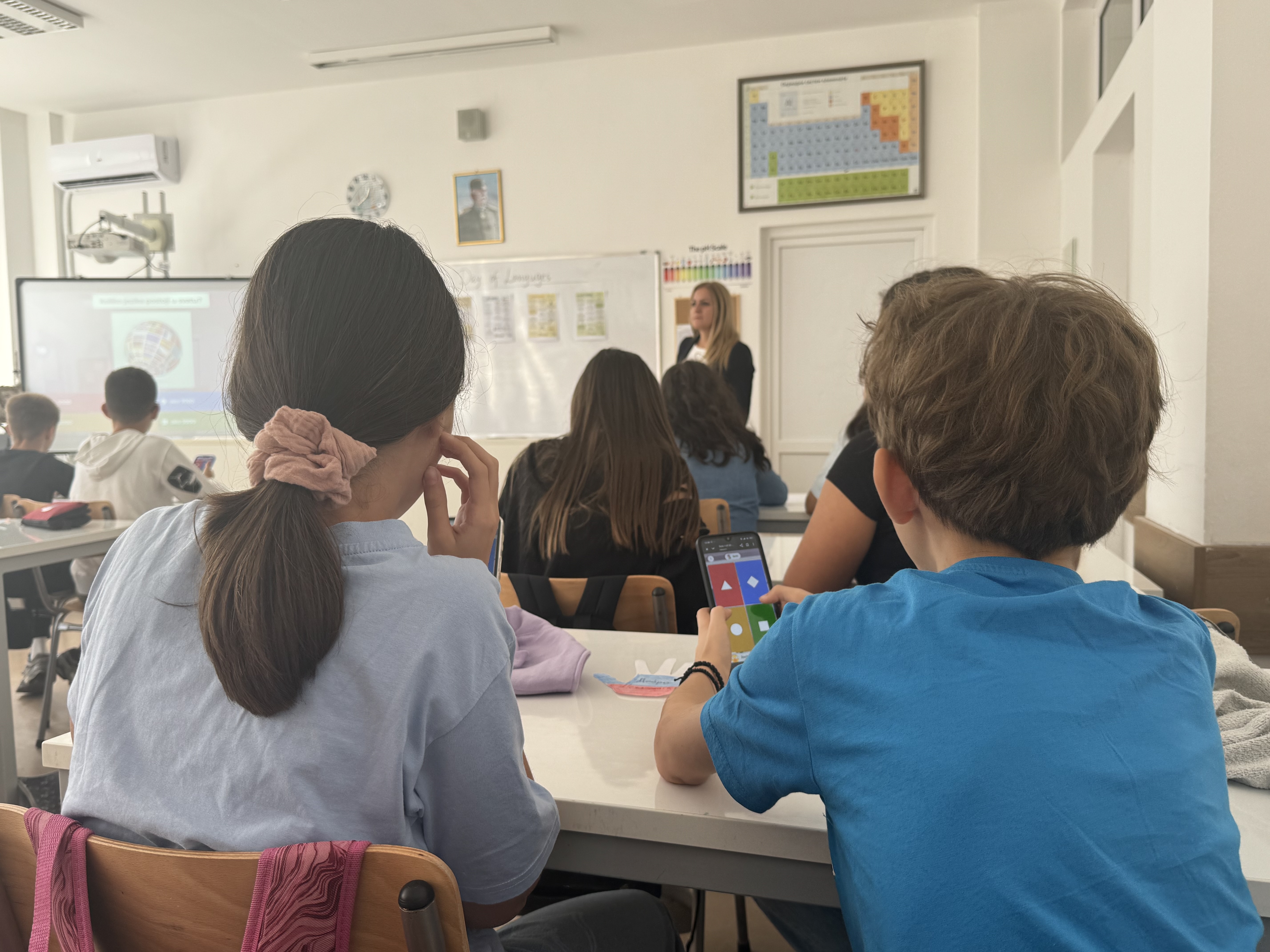 Овогодишње обележавање било је обогаћено применом савремених ИКТ алата, које су наставнице усавршиле управо кроз учешће у Еразмус+ пројекту. Стечена знања и искуства током мобилности у иностранству пренета су у наставну праксу, што је ученицима омогућило да учење језика доживе на савремен, занимљив и мотивациони начин. Тако су се такмичили у Kahoot квизу, решавали дигиталне загонетке и уживали у изазовима Escape room-а, спајајући забаву и учење.